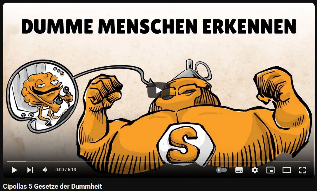 Dies sind kurzgefasst die fünf fundamentalen Gesetze bzw. Prinzipien der Dummheit, die Cipolla satirisch in seinem Werk Die Prinzipien der menschlichen Dummheit beschreibt: