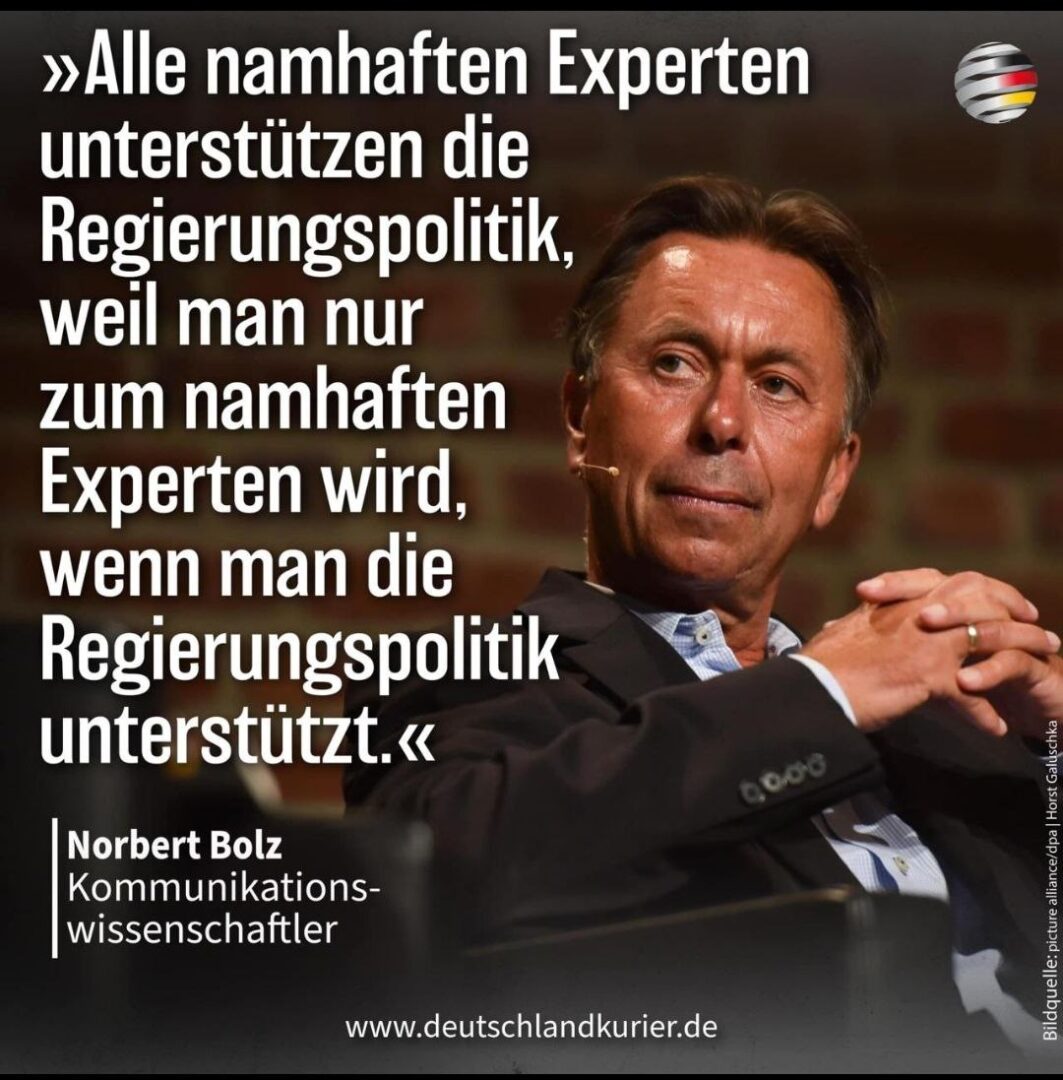 Alle namhaften Experten unterstützen die Regierungspolitik, weil man nur zum namhaften Experten wird, wenn man die Regierungspolitik unterstützt! – Norbert Bolztg