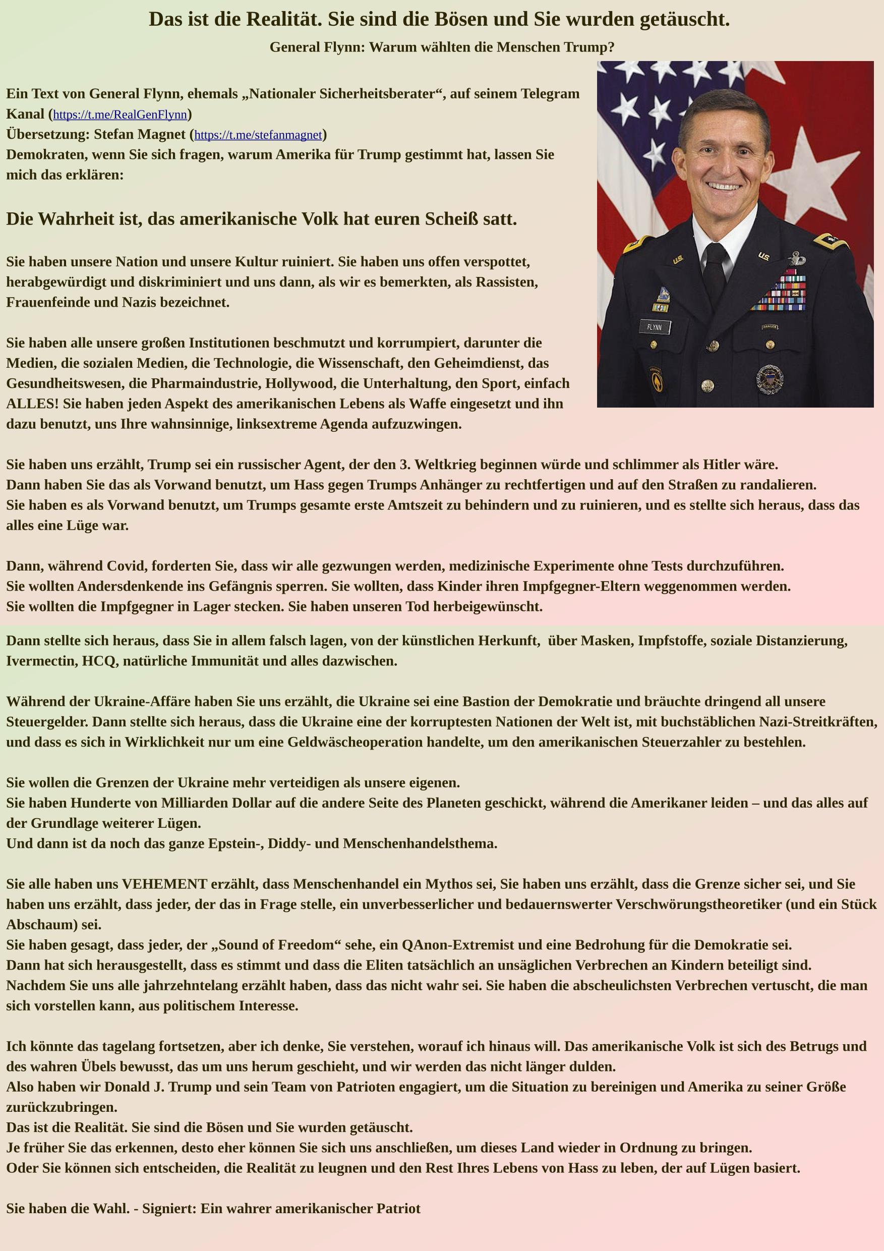 Wahre Patrioten Quelle der Infos: telegram/Links/YT untergang des hegemons Diesen Text würde ich auch für die EU und auch für Deutschland gelten lassen!Überall das gleiche Desaster! Kanal (https://t.me/RealGenFlynn) – Übersetzung: Stefan Magnet (https://t.me/stefanmagnet)