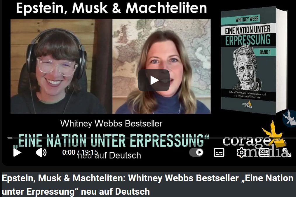 Whitney Webb spricht über die deutsche Veröffentlichung ihres Bestsellers „Eine Nation unter Erpressung“. Im Gespräch mit Verlegerin Gesa Schöning enthüllt sie die tiefen Verbindungen zwischen Politik, Medien, Tech-Elite und organisierter Kriminalität – weit über den Fall Epstein hinaus. Ein eindringlicher Blick hinter die Fassade globaler Machtstrukturen.