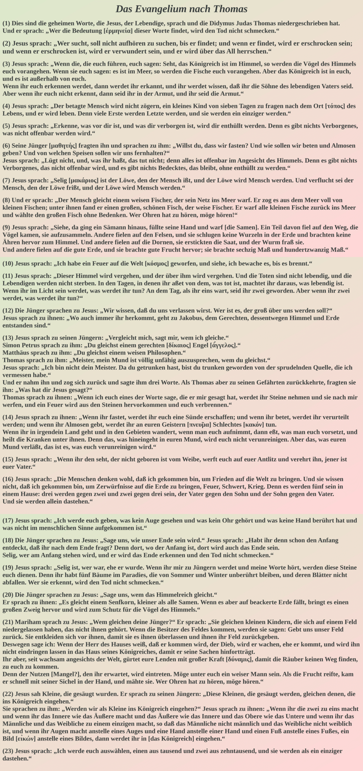 Thomas-Evangelium Quelle der Infos: telegram/Links/YT Abraham. Religionen Das Evangelium nach Thomas Quelle: http://rfmeyer.de/pdf/Thomas-Evangelium.pdf