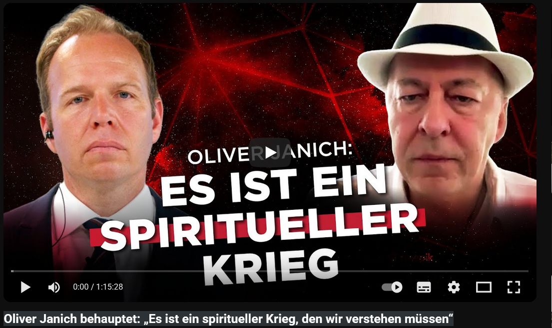 (1) Wer glaubt, so Janich, es gehe nur um Geld oder Öl oder Bodenschätze, der habe die Tragweite des Weltgeschehens nicht verstanden. In seinem Buch „Das offene Geheimnis“ führt der investigative Journalist Janich zahlreiche Zitate, Quellen und Fundstellen an, die den von ihm beschriebenen „spirituellen Krieg“ beschreiben!
