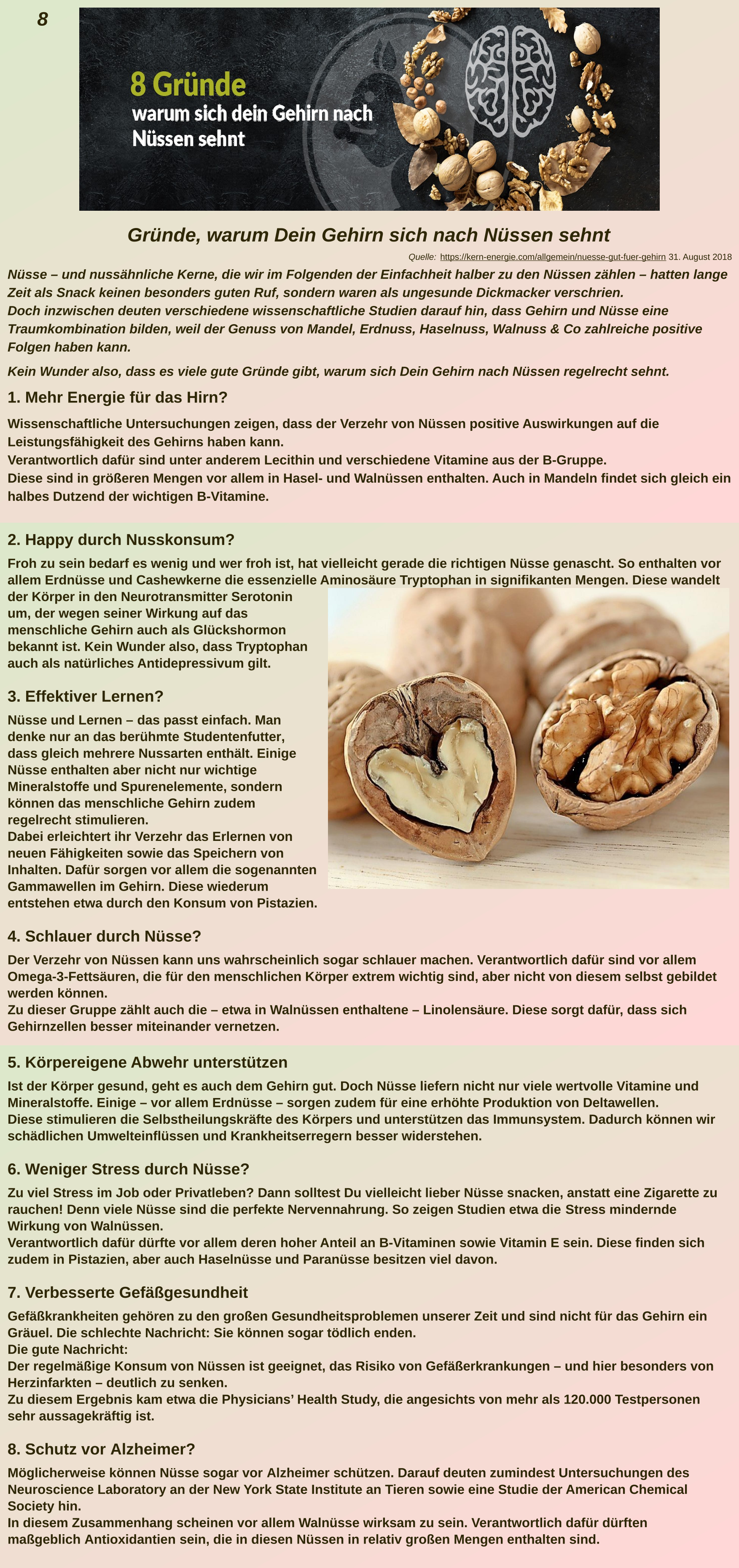 Nüsse Quelle der Infos: telegram/Links/YT ernährung 8 Gründe, warum Dein Gehirn sich nach Nüssen sehnt 8 Gründe warum Dein Gehirn sich nach Nüssen sehnt – Quelle: kern-energie.com 31. August 2018