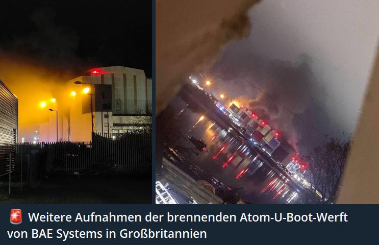 Großbrände-Europa Quelle der Infos: telegram/Links/YT Brandkatastrophen 🚨 Weitere Aufnahmen der brennenden Atom-U-Boot-Werft von BAE Systems in Großbritannien! – telegram
